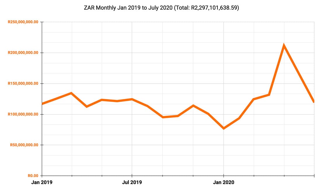 Monthly Value of Credit Applications Handled in ZAR Jan 2019 – mid July 2020
